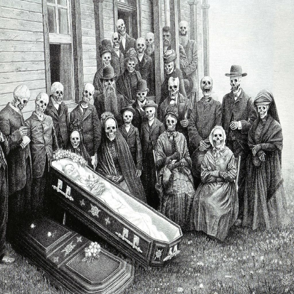 Presenting.. The Funeral… “All of them gathered, crawling out of the cupboards, the dusty attic, the closets and crawl spaces, all the dark places where they would rest throughout the year. They came to give their respect for the loss of something so great. They came for the funeral of Halloween, laid to rest in Bound Brook, October 31st, 2020. No more parades. No more trick-or-treating. No more Halloween. They came to offer their condolences. They came to bear witness. Halloween in Bound Brook is Dead. Long Live Halloween!” #31skeletons#theskeletonhouse#halloweeninboundbrookisdead#longlivehalloween