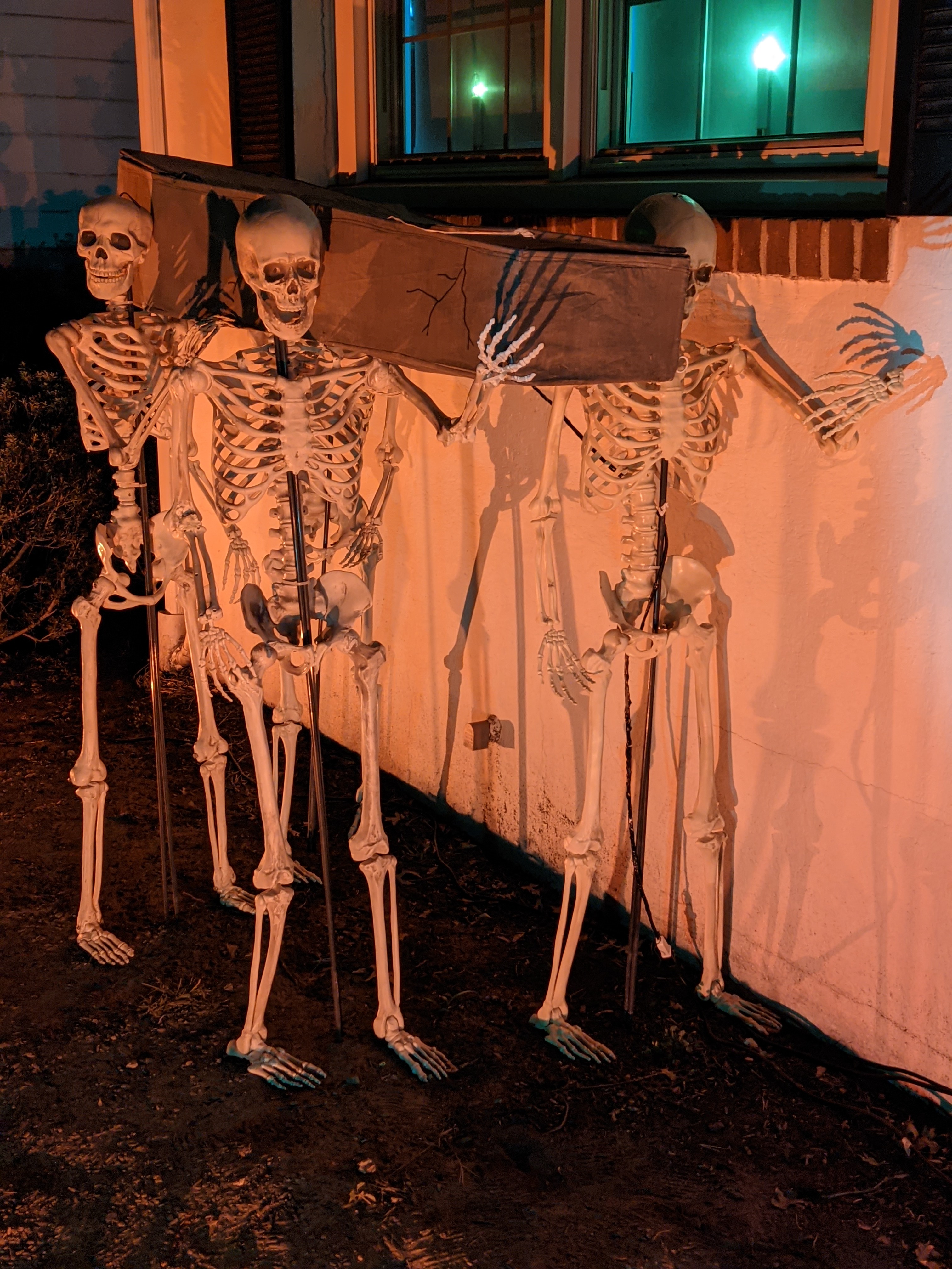 31 Skeletons continue with some house decorations and Skeletons #4 through #7. These skinny pallbearers will help you to your final resting place… But is that coffin lid moving? “Bring out your dead… bring out your dead?” #31skeletons#theskeletonhouse#bringoutyourdead