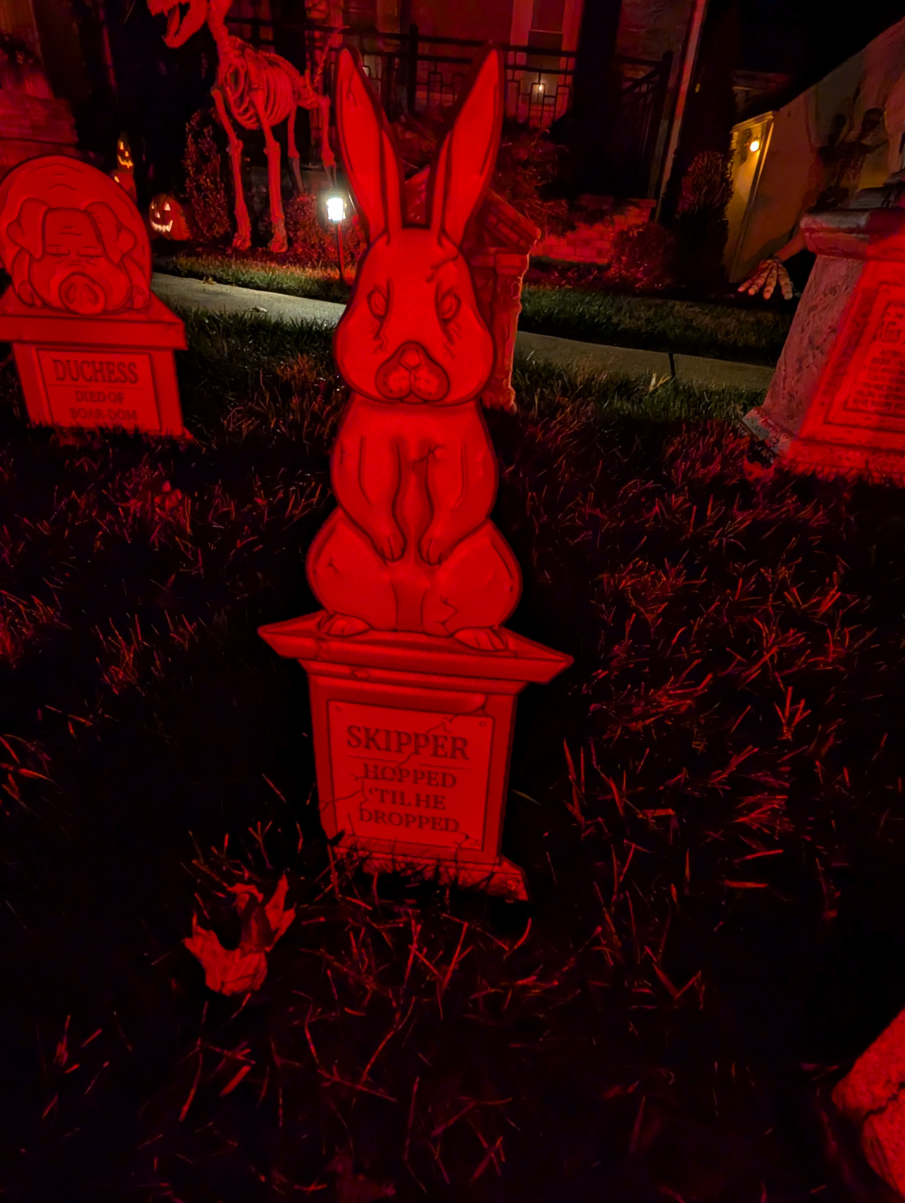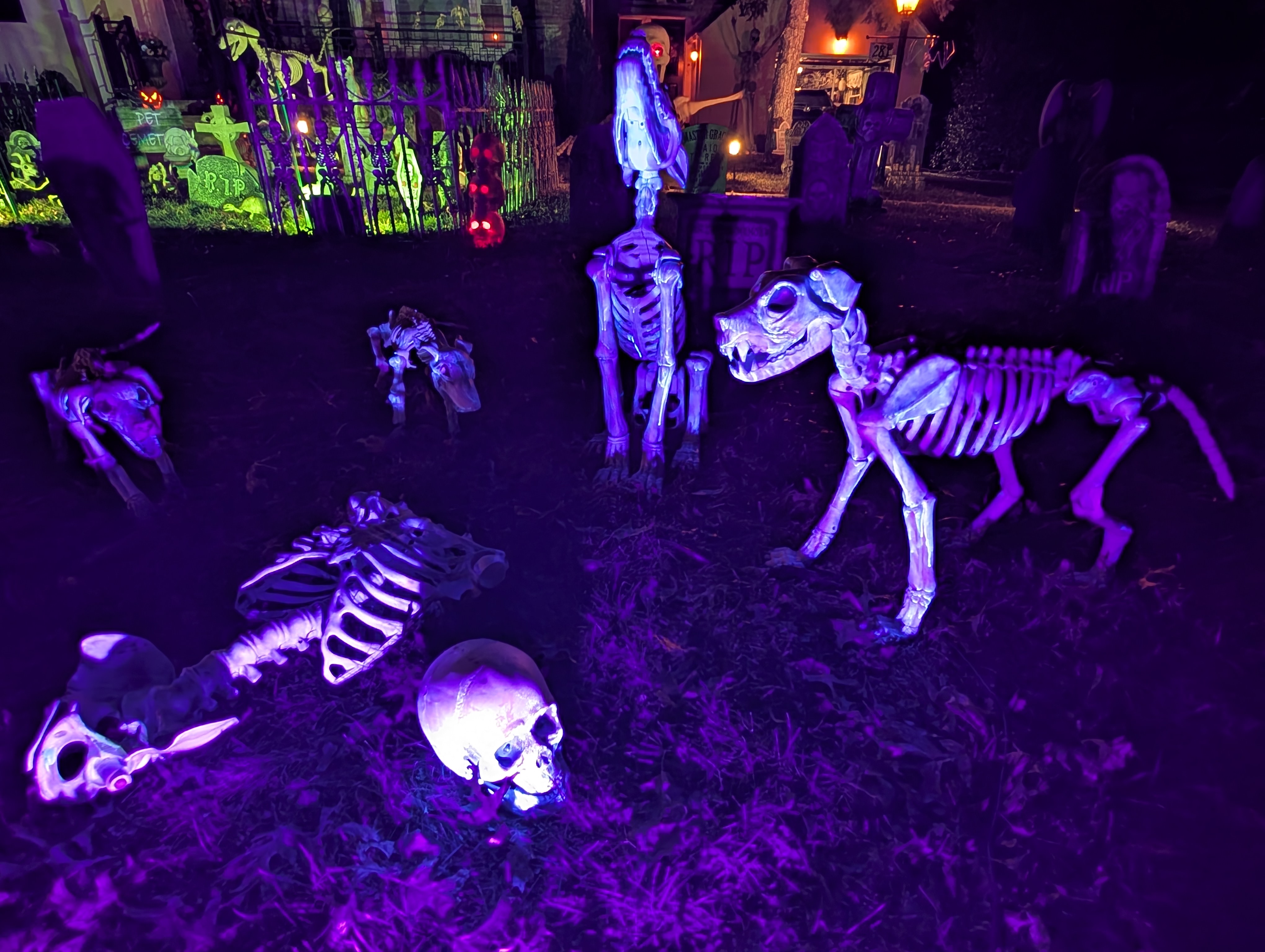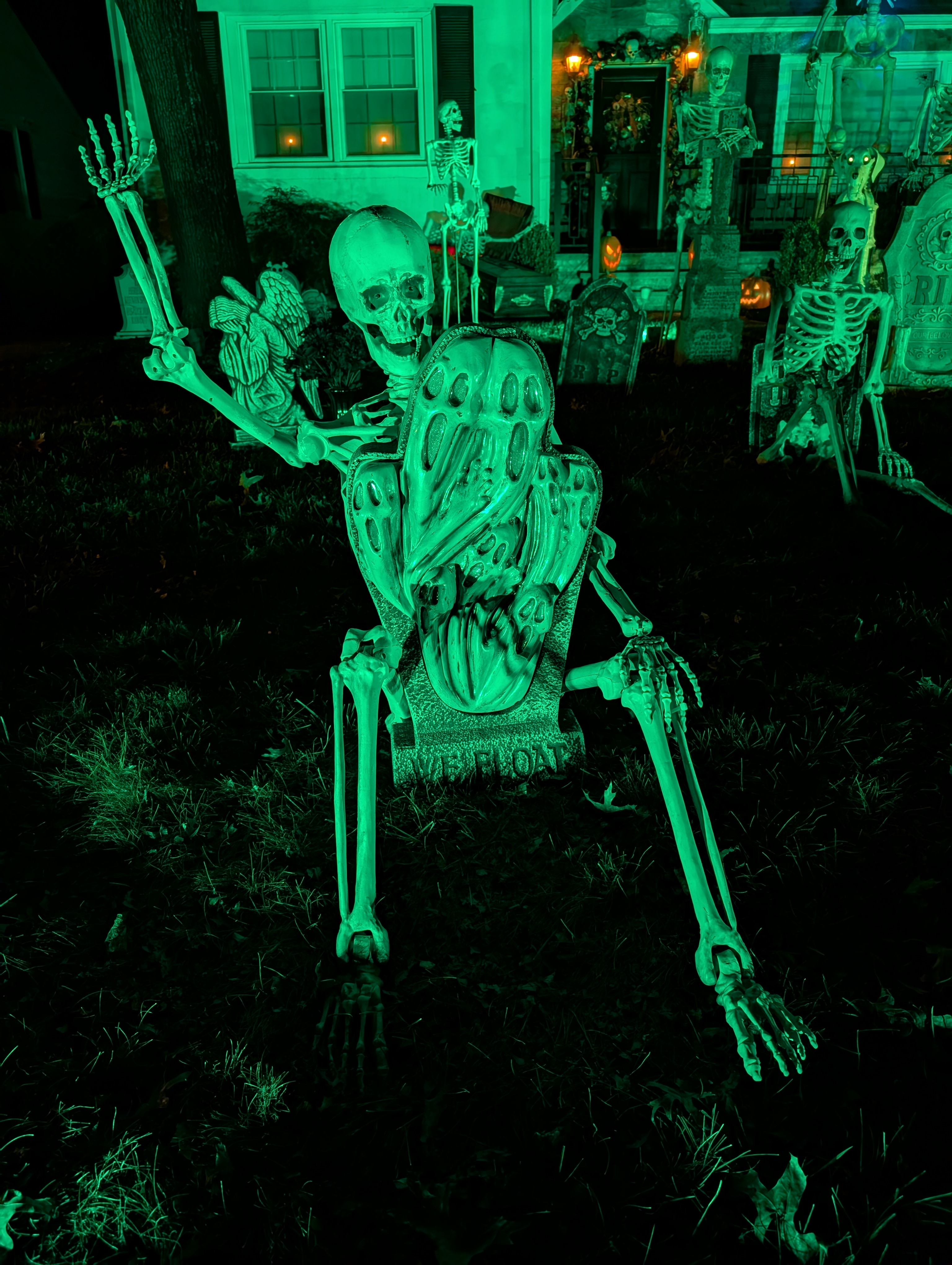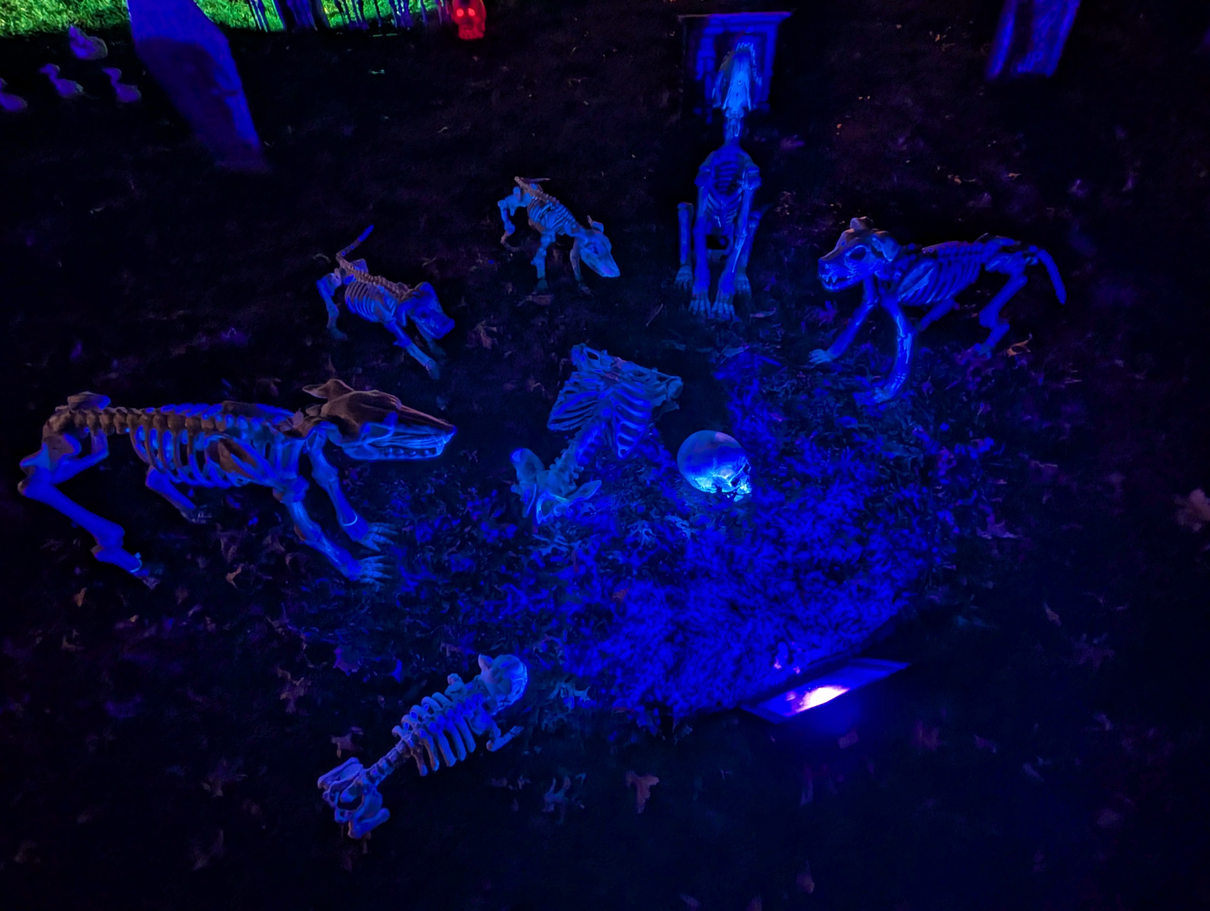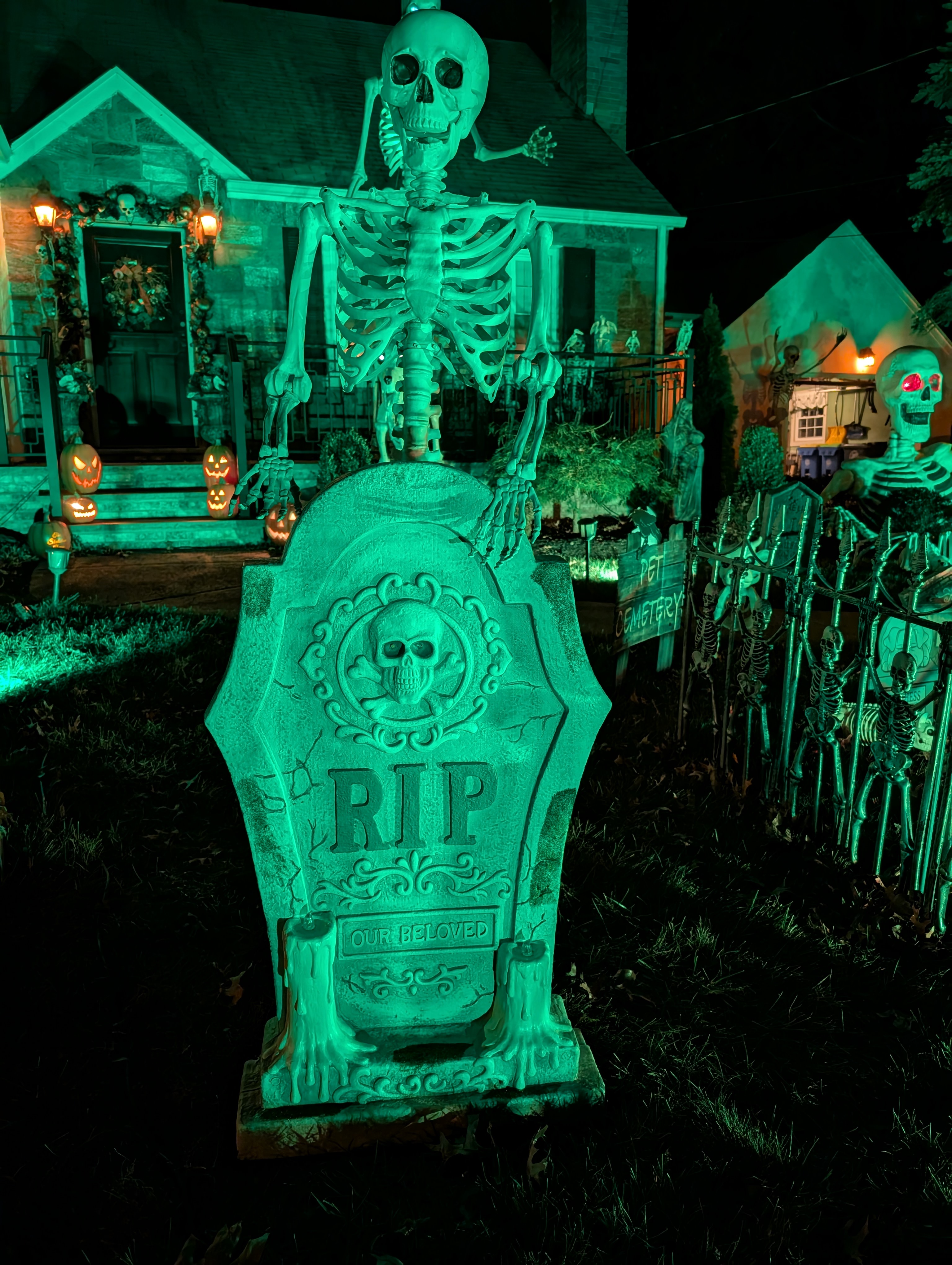 October 1st, 2024 – The Cemetery is not open yet, but a few friends have come to visit in the meantime… #theskeletonhouse #petcemetery #petsematary #12footskeleton #12ftskeleton