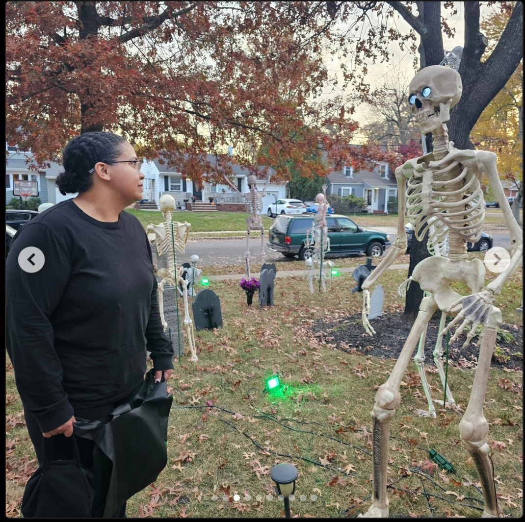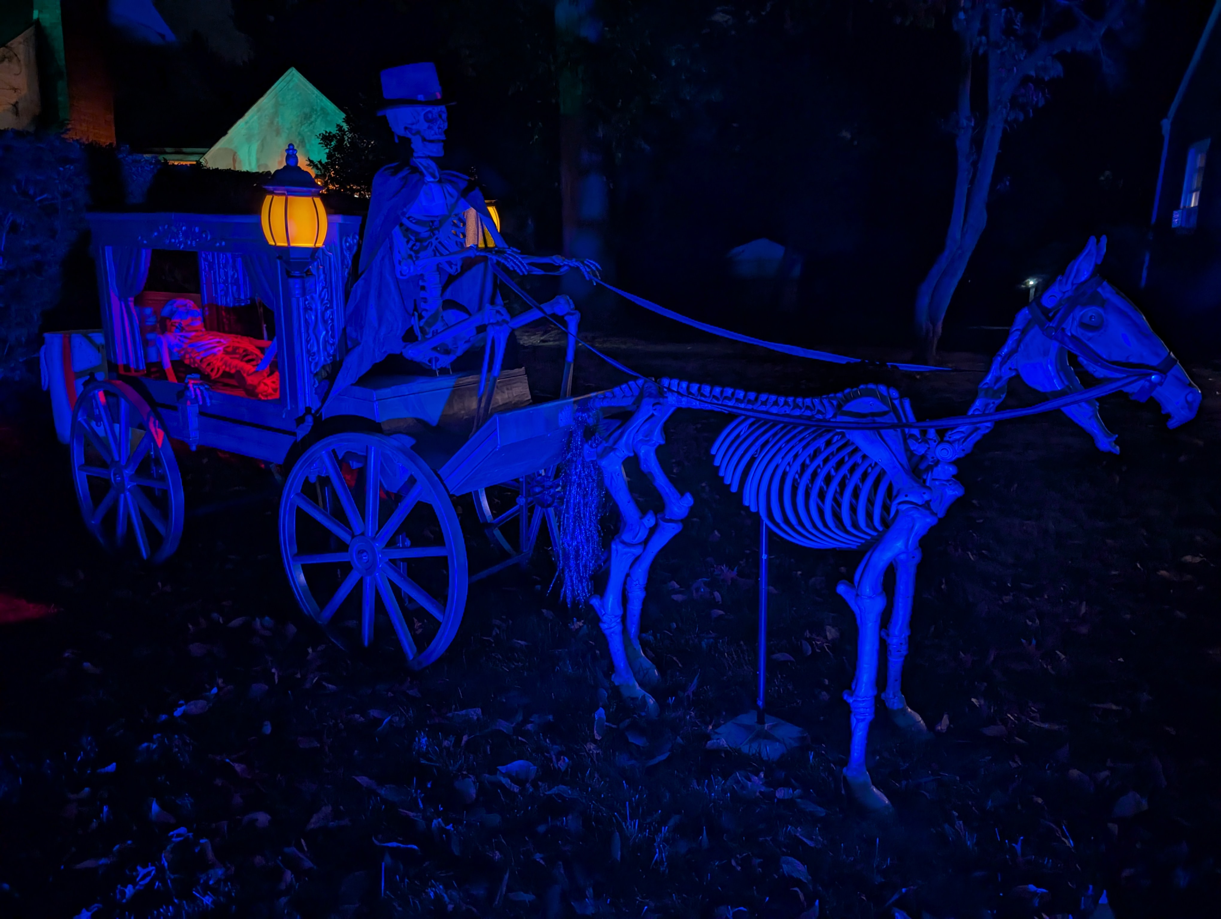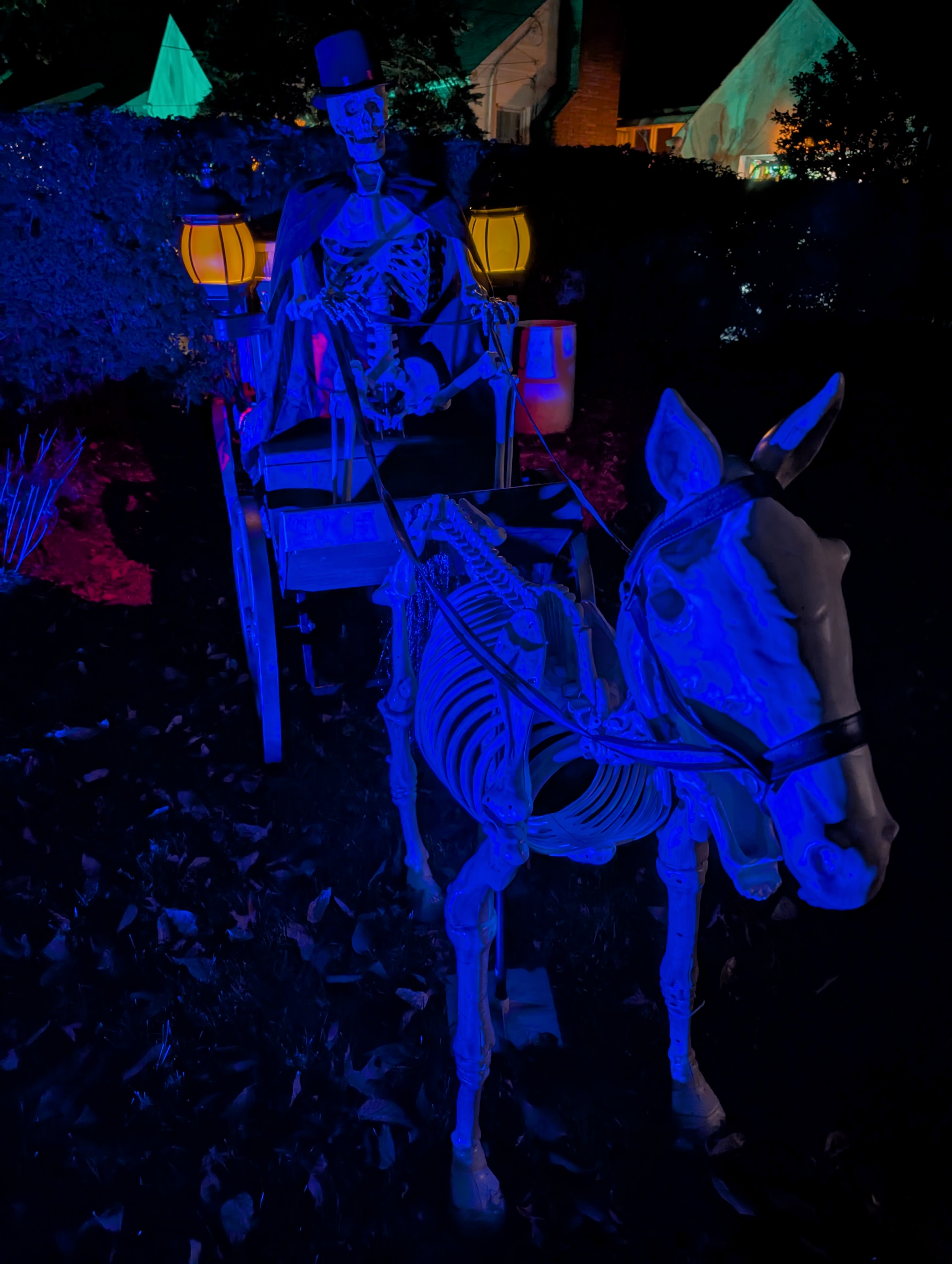 While preparing the arrival of all our skeleton friends we were able to share our Skeleton Hearse with our next door neighbor… #theskeletonhouse #thearrival #nextdoorneighbor