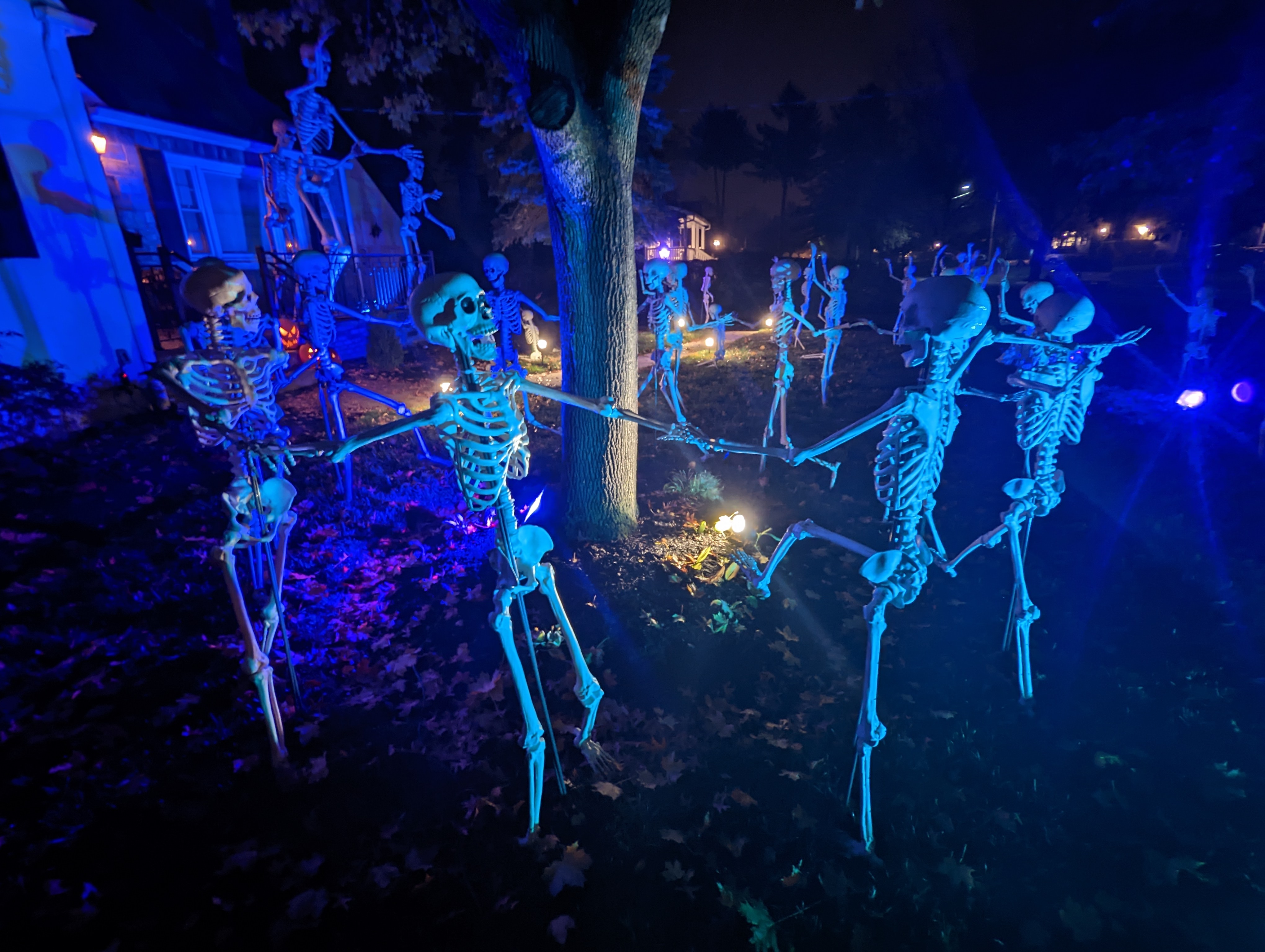 October 25th, 2022 – Countdown to Halloween! All our skeletons are out and enjoying the night! #31skeletons #theskeletonhouse #cultoftheskeletongod